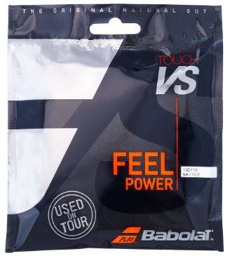 Babolat Touch VS 16 Tennis String Natural* TOUCH VS elasticity provides an amazing power due to an unrivaled energy restitution. Collagen from natural fibers makes the TOUCH VS our more elastic string increasing the contact time with the ball for an unrivaled feel.