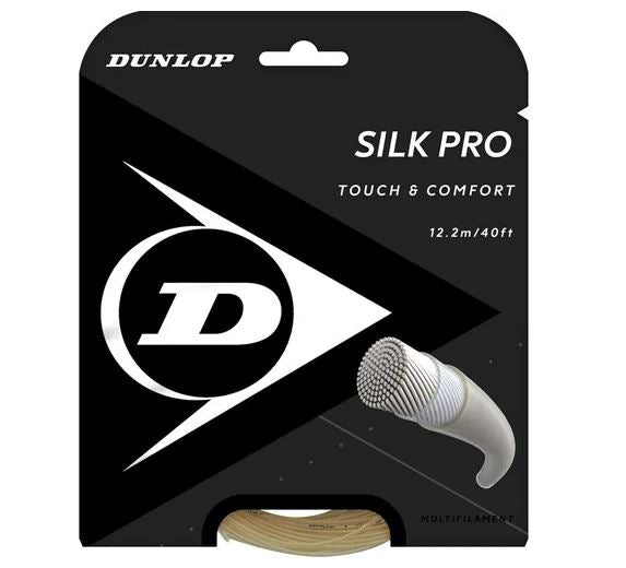 Dunlop Silk Pro Tennis String Natural* Dunlop’s closest feeling to natural gut ever. But in a synthetic multifilament construction. Play like a pro and hit shots with maximum power and ultimate comfort with this super-premium string.