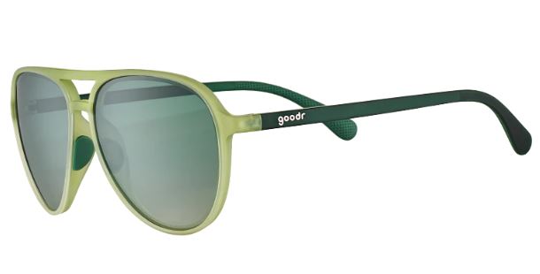 Cadet green aviator sunglasses designed to fulfill a (metaphorical) need for speed. Sunnies can’t make you run faster, but the no slip, no bounce frames stay put while you sweat and gradient polarized lenses with UV400 protection keep your peepers safe and your vision sharp.