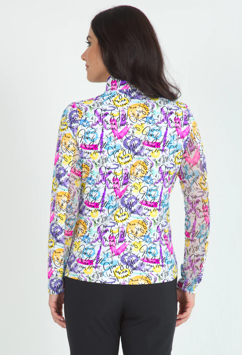 IBKUL Angie Print Long Sleeve Mock Neck Top – 10765 (Limited Ed.)