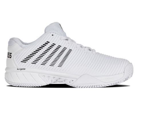 K-Swiss best-selling shoe, the Hypercourt Express 2, now available with a Herringbone clay court outsole, is light, comfortable, breathable, and has a generous fit, making it the ideal choice for a variety of playing styles and levels. Durawrap Flex, gives the shoe support with no break-in period, while Surgelite midsole technology provides all day comfort