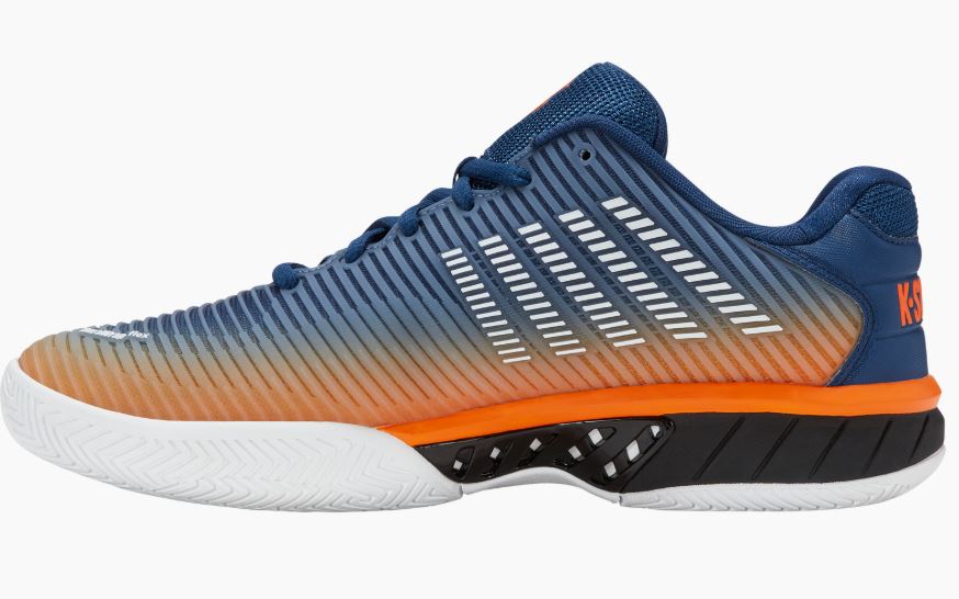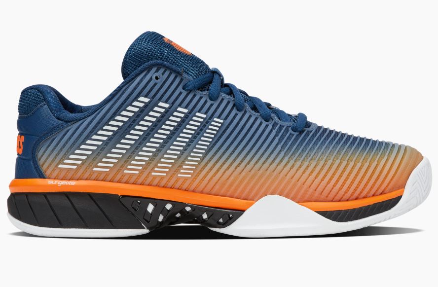 K-Swiss best-selling shoe, the Hypercourt Express 2, is light, comfortable, breathable, and has a generous fit, making it the ideal choice for a variety of playing styles and levels. Durawrap Flex, gives the shoe support with no break-in period, while Surgelite midsole technology provides all day comfort.