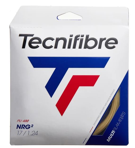 Tecnifibre NRG-2 17g Tennis String Natural* The NRG² was designed with a special purpose in mind: to be the engine of the racket! A specific construction of more than 1200 microfilaments made of Elastyl (12% more elastic than standard polyamide). Impregnated with 400 polyurethane to generate power and comfort. NRG features the exclusive S.P.L surface treatment to provide slip and effective snap back so you don't have to re-string during play.