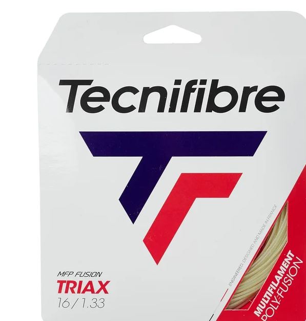 Tecnifibre Triax Tennis String Natural* A superior level of durability thanks to the Co-polyester material used for the first time in a multifilament. A higher level of arm protection thanks to the use of Polyurethane (HD) which is 100% flexible. A superior level of spin directly related to the highest level of firmness in a multifilament.