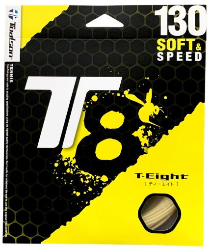 Toalson T8 16g Multifilament Tennis String* T8 is a specially processed multi strand string combining nylon multifilament and peek fiber in latest technology. The honeycomb shaped string is designed for players seeking excellent repulsion and durability. T8 offers great playability with a soft feel.