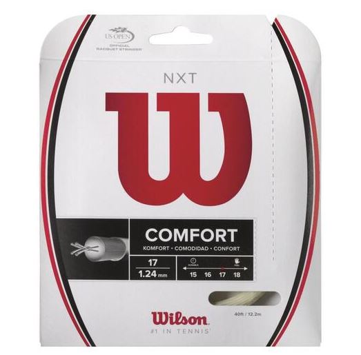 Wilson NXT 17g Tennis String Natural* Featuring proprietary xycro microfibers impregnated with PU for enhanced comfort and power. Sporting a larger sweet spot than traditional synthetic gut string and a fraction of its shock. NXT has stood the test of time for good reason.
