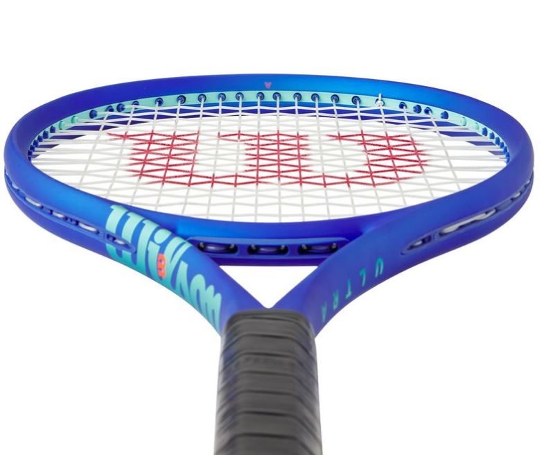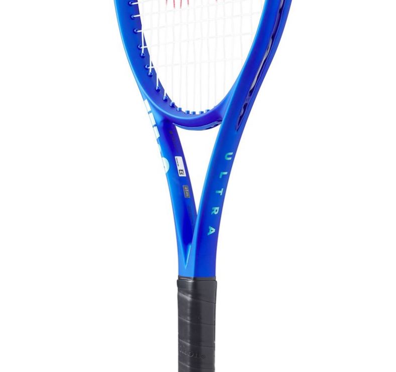 The Ultra 100 V5 marks the next phase of the Ultra series, combining bold design with game-changing performance. With a revamped construction and refined geometry, this racket delivers a fresh playing experience unlike its predecessors. Key updates include SI3D technology, which optimizes frame bending for power, spin and control targeted to intermediate and advanced players. FORTYFIVE° technology boosts stability, leading to more consistent strokes and greater confidence on every shot. An expanded sweet spot with longer dwell time increases pocketing, while dual-tapered beam construction maximizes power without sacrificing forgiveness. Aesthetically, the Ultra 100 V5 stands out with its "electric indigo" shade, creating a captivating visual effect that will turn heads on the court